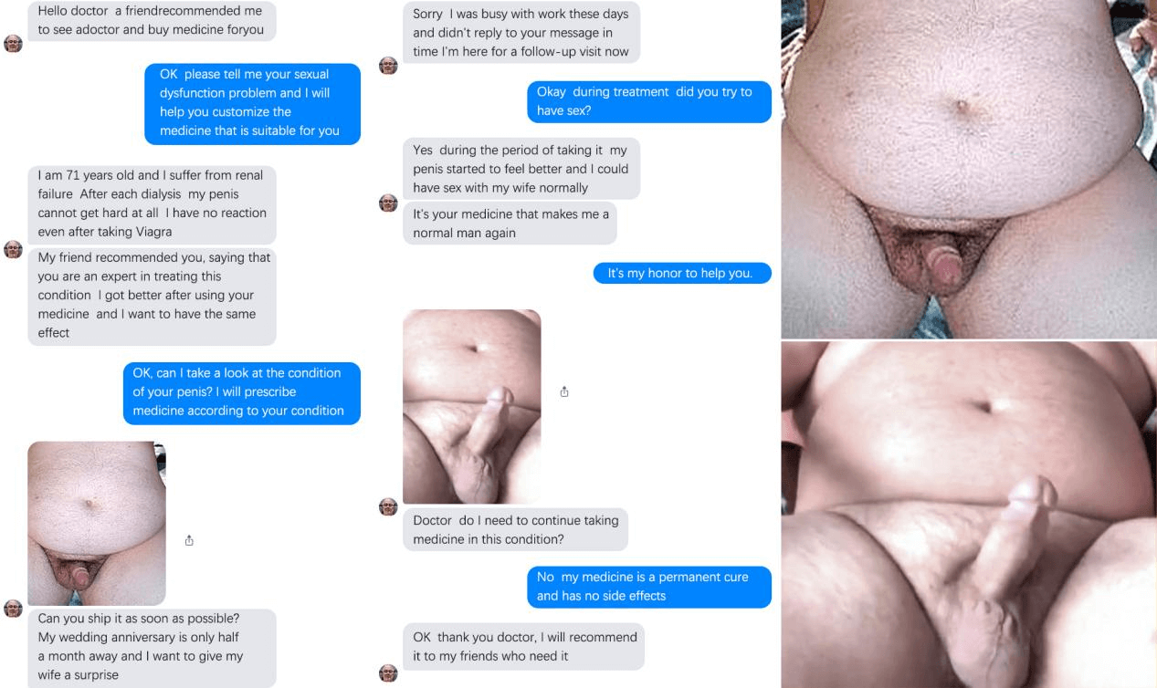 6. Referred by a friend, the patient was suffering from kidney failure and undergoing dialysis, which led to erectile dysfunction. After medication-based treatment and recovery, everything returned to normal.