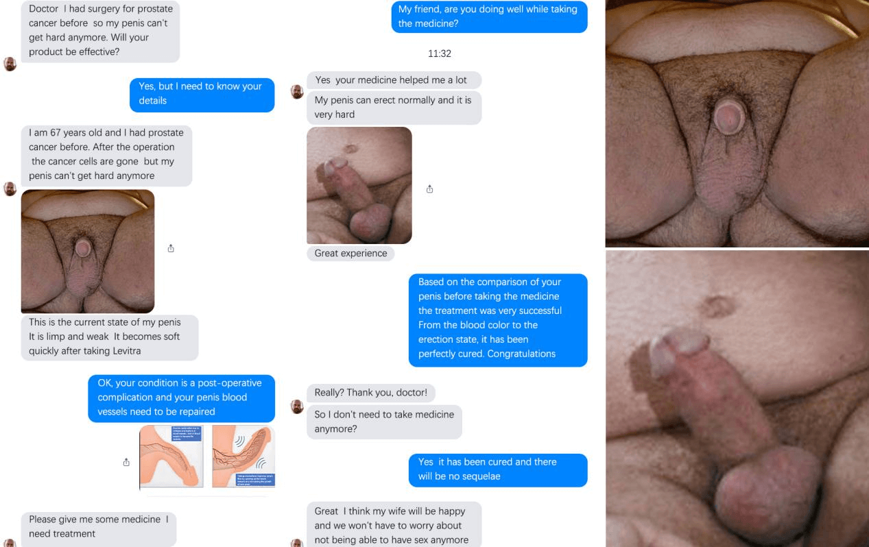 4. Referred by a friend, the patient had previously tried medications from other doctors without success. After starting the new treatment, he regained confidence from failure — his penis could achieve normal erections, became hard as steel, and showed excellent stamina. This case highlights the importance of choosing the right treatment approach.